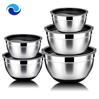 Bộ 5 Tô Trộn Salad Bằng Thép Không Gỉ Có Nắp Đậy Kín Khí Và Đế Chống Trượt Dùng Trong Nhà Bếp