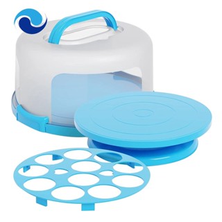 Hộp Đựng Bánh Cupcake Có Nắp Và Tay Cầm + Đĩa Đứng Hình Tròn 10inch Màu Xanh Dương