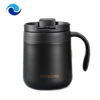 Cốc Uống Cà Phê Giữ Nhiệt Bằng Thép Không Gỉ Hai Lớp Có Tay Cầm Và Nắp Đậy