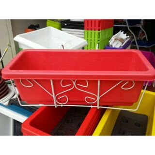 combo 3 bộ giá sắt móc ban công + chậu hình chữ nhật dài 48cm x rộng 19,5cm x cao 16cm