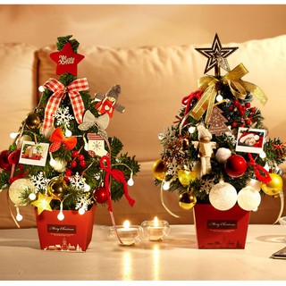 Cây thông noel cao 30cm,40cm phong cách hàn quốc đầy đủ phụ kiện và đèn C02
