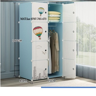 TỦ NHỰA LẮP GHÉP TỦ QUẦN ÁO 8 Ô SÂU 47 TẶNG THANH TREO