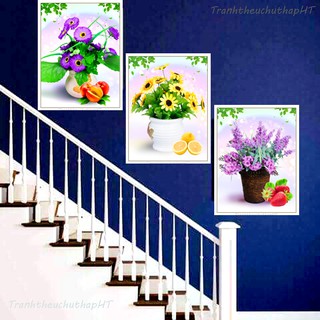 Tranh đính đá tự làm - Tranh thêu chữ thập Bình hoa đẹp (tự thêu)