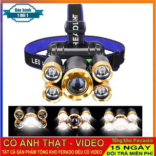 Đèn Pin Đội Đầu Đeo Trán 5 Bóng T6 Siêu Sáng Kèm Pin Sạc gọn gàng thuận tiện