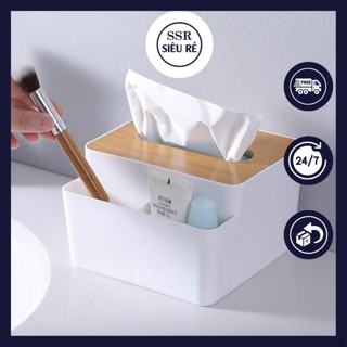 Hộp Đựng Giấy Ăn Để Bàn Có Ngăn Để Đồ Đa Năng, Hộp Khăn Giấy Nắp Gỗ (TKS)