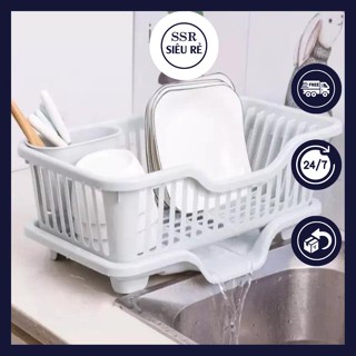Rổ Úp Chén Bát Có Khay Thoát Nước Tiện Lợi - Khay Úp Chén Bát Có Hộp Để Ống Đũa - Rổ Úp Chén Dĩa Rửa Rau Củ Quả Ráo Nước