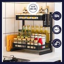 Kệ Gia Vị Đa Năng Inox Phủ Sơn Tĩnh Điện Đen Kgv-007, Kệ Bếp Cao Cấp 2 Tầng Loại Dày (PD138186)