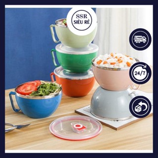 Bát Ăn Mì Ruột Inox Vỏ Nhựa Lúa Mạch Chống Nóng Dùng Được Lò Vi Sóng - 14cm Tặng Muỗng
