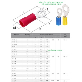 100 chiếc Đầu cos/ cốt tròn bọc nhựa RV1.25-4S/5S/6/8 và RV2-4S/5S/6 R3.5-5 R5.5-4