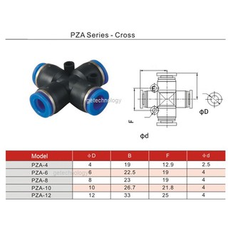 Đầu nối nhanh chữ thập PZA4 PZA6 PZA8 PZA10 PZA12 Đầu nối khí T4, đầu nối ngã 4, đầu nối chữ X PZA4 PZA6 PZA8 đầu nối