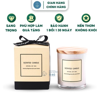 Nến Thơm Tinh Dầu Cao Cấp Không Khói An Toàn Candle Cup Cốc Thủy Tinh Màu Kem Nắp Gỗ Sang Trọng