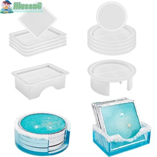 Khuôn Silicone Đa Năng Hình Vuông / Tròn Kèm Giá Đỡ Đựng Đồ Dùng Epoxy Resin Diy