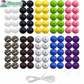 Set 100 Hạt Xâu Chuỗi Silicone 15mm Kèm Dây 2m Dùng Để Làm Đồ Trang Sức Thủ Công
