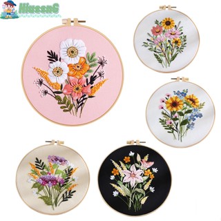 Bộ Tranh Thêu Hình Hoa Nhiều Màu Sắc Kèm Khung Thêu Dành Cho Người Mới Bắt Đầu