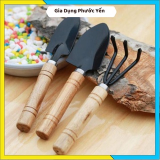 Bộ dụng cụ làm vườn 3 món (cán gỗ) size trung