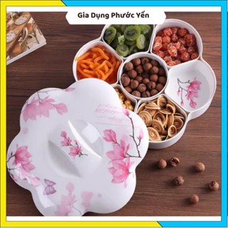 Khay hộp đựng mứt Tết phíp hình cánh hoa 7 ngăn hình 6 cánh hoa cao cấp size to 31cm