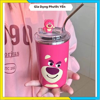 Bình đựng nước giữ nhiệt gấu hồng Losto dễ thương tặng kèm ống hút inox 400ml