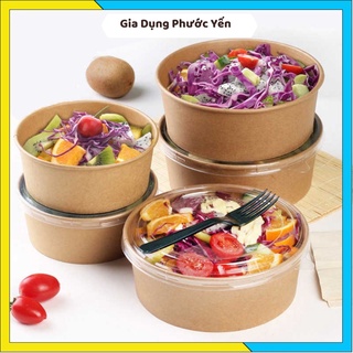 Combo 10 Bát Giấy Kraft 750ml & 1000ml - Bát Giấy Dùng 1 Lần Có Nắp