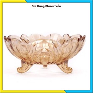 Bát thố thuỷ tinh 3 chân đựng hoa quả trái cây Deli màu hổ phách sang trọng