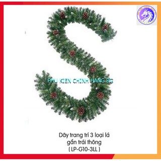 Dây Trang Trí Giáng Sinh Noel 3 Loại Lá Gắn Trái Thông Dài 270cm Dây Thông 2m7 Trang Trí Đẹp