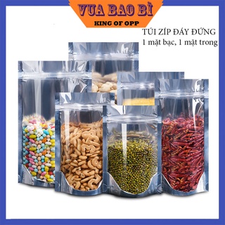 Túi zip đáy đứng 1 một mặt bạc, 1 mặt trong, túi trong suốt, KING OF OPP