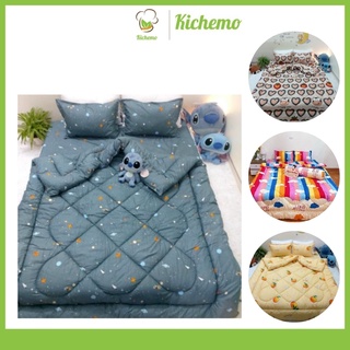 Trọn Bộ 5 Món Ga Gối Chăn Phao Poly Cotton Kichemo Có Ruột Bông Dày Loại 1 ( Nhắn Chọn Mẫu )
