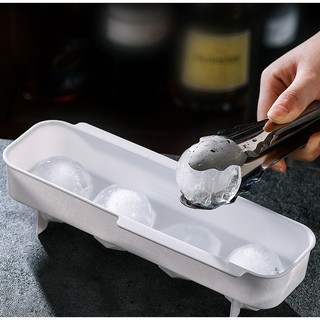 Khuôn 4 ô làm đá hình tròn có nắp 24.5x9.1cm đông lạnh