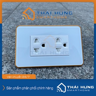 [Hỏa tốc HN] Ổ cắm đôi âm tường mặt kính cường lực khung kim loại - Đen/Trắng Hỗ trợ nối đất an toàn