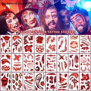 Set 10 Tấm Hình Xăm Dán Vết Sẹo Mạ Vàng Bạc Độc Đáo Cho Tiệc Halloween