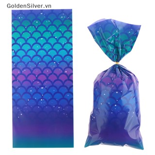 Set 50 Túi Đựng Bánh Kẹo Hình Đuôi Nàng Tiên Cá Màu Vàng Bạc