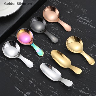 Muỗng Ăn Tráng Miệng Bằng Thép Không Gỉ Tay Cầm Ngắn Màu Vàng Bạc Dễ Thương