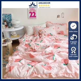 Bộ chăn ga gối cotton tici viền bèo cao cấp, chăn ga gối viền bèo công chúa dễ thương đủ kích thước - AMI.Decor