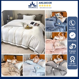 Bộ chăn ga gối lụa SUMOI nhập khẩu cao cấp, chăn ga lụa Tencel được phối màu cực kỳ đẹp, miễn phí bo chun theo yêu cầu