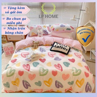 Bộ chăn ga gối Poly Cotton Tim 7 màu love siêu yêu siêu lãng mạn (Tặng vỏ gối ôm) - Miễn phí bo chun