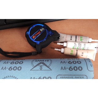 Bộ sản phẩm gồm:1 thước 5m Kapusi+1 giấy nhám vuông+3 tuýp keo che khuyết điểm