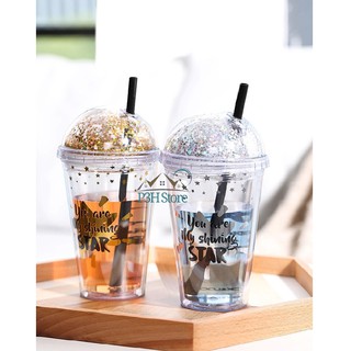 Ly nhựa 2 lớp kim tuyến nắp cầu Lock&Lock có ống hút HAP506