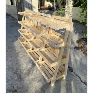 KỆ Bánh / Kệ trưng bày hoa quả , kệ chữ A gỗ thông CÓ BÁNH XE di chuyển