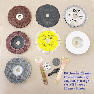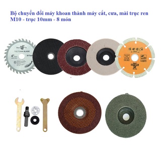 Bộ chuyển đổi máy khoan kèm đĩa cắt sắt cắt gạch cắt gỗ đá mài,đánh bóng trục 6mm - 10mm kèm bộ 6 món hoặc bộ 8 món