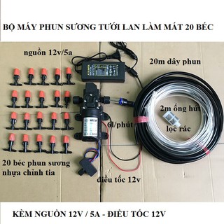 bộ máy phun sương tưới lan,làm mát 20 béc phun sương kèm đổi nguồn