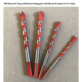 Bộ 4 Mũi khoan gạch men, đá, bê tông, kính, nhôm, tấm sắt, gỗ đa năng bộ 5 mũi 6-8-10-12mm