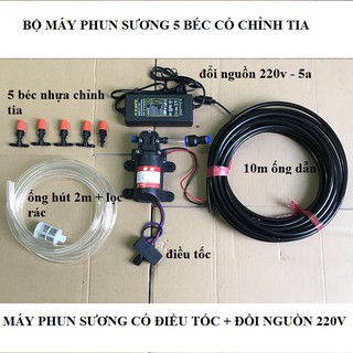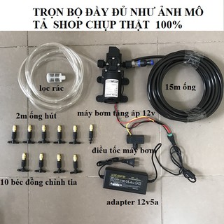 Bộ máy bơm phun sương làm mát,tưới lan 15 béc phun sương - kèm nguồn 12v5a - điều tốc máy bơm