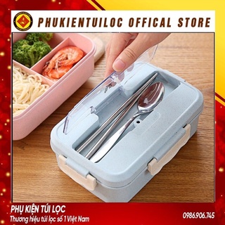 Hộp Đựng Cơm Giữ Nhiệt Ăn Trưa Văn Phòng Chia 3 Ngăn Bento Cute - Cà Mèn Tặng Thìa Đũa - Khay Sử Dụng Lò Vi Sóng
