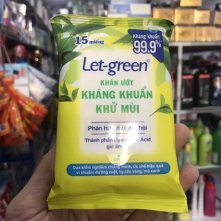 Khăn Ướt Kháng Khuẩn Khử Mùi Let-Green 15 miếng 1 gói