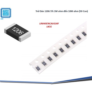 Trở Dán 1206 5% 1M ohm đến 10M ohm (50 Con)