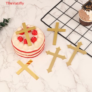 [Thevalifly] Bộ 5 Que Cắm Bánh Kem Acrylic Chữ Thập Màu Vàng Kim Tối Giản 10 * 7cm