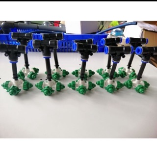 Bộ 10 sản phẩm béc phun sương 4 hướng mầu xanh có T nối nhanh