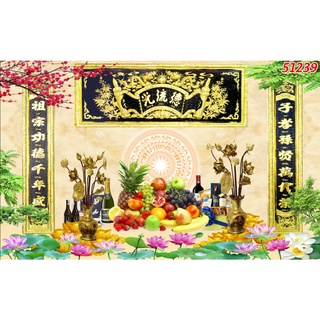 Tranh dán tường phòng thờ mâm ngũ quả mẫu mới nhất năm nay