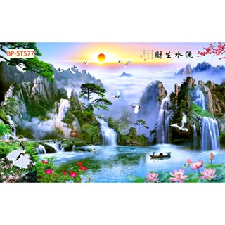 Tranh 3D Sơn thủy Cao Cấp Chất liệu lụa 3D, xé không rách, lau chùi thoải mái.