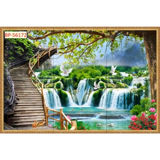 Tranh SƠN THUỶ phong cảnh thác nước thiên nhiên tặng keo và dụng cụ dán