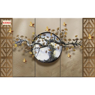 Tranh Phong Thủy Gia Đình Chim Công Xanh Trên Cành Cây Nghệ Thuật, Tặng kèm phụ kiện